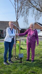 Former Councillor Margaret Moore was joined by former colleagues and current Kinwarton Parish Councillors on Saturday 21st March to unveil a plaque honouring her 44 years of service to the local community. The plaque sits beneath a newly planted cherry tree on the green in Winchcombe Road.